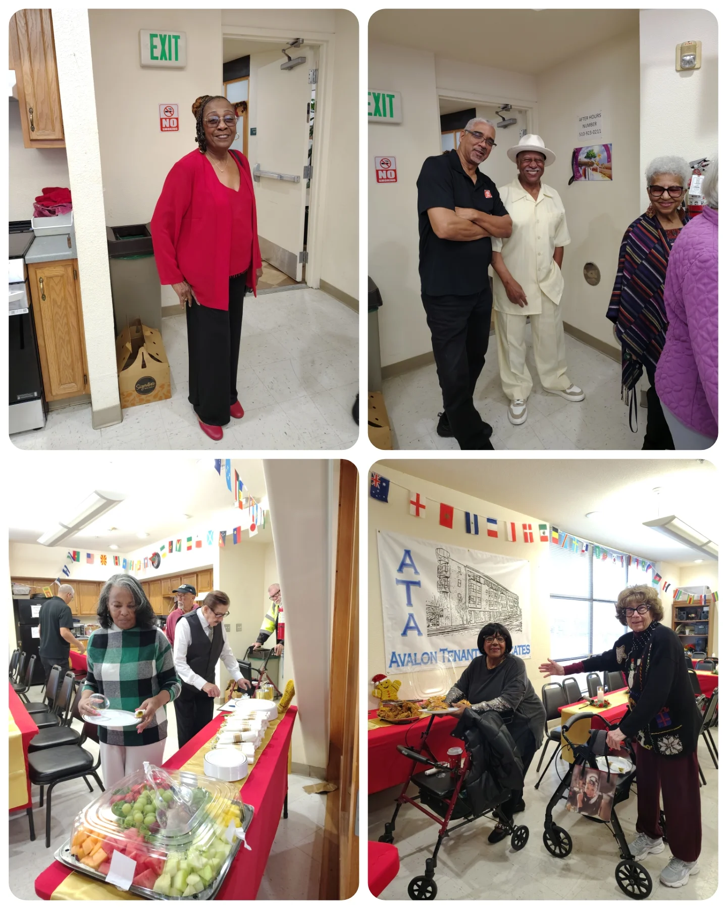 The Christmas Holiday Dinner for the Avalon Senior Community was held on December 17, 2025, from 4:00 PM to 6:00 PM, in the community room located at 3850 San Pablo Avenue, Emeryville, California 94608. The evening was filled with joy, laughter, and the true spirit of the holiday season. The catering was absolutely fabulous, and residents truly enjoyed a delicious meal shared with friends and neighbors.