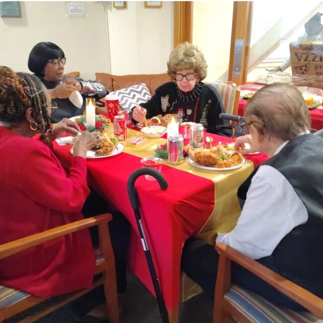 Officers and board members of the Lisa Regina Martin Family Corporation proudly came together to decorate the community room with festive holiday décor, creating a warm and cheerful atmosphere for everyone to enjoy. They also had the pleasure of serving food and spending quality time with the residents, sharing smiles, conversations, and holiday wishes throughout the evening.